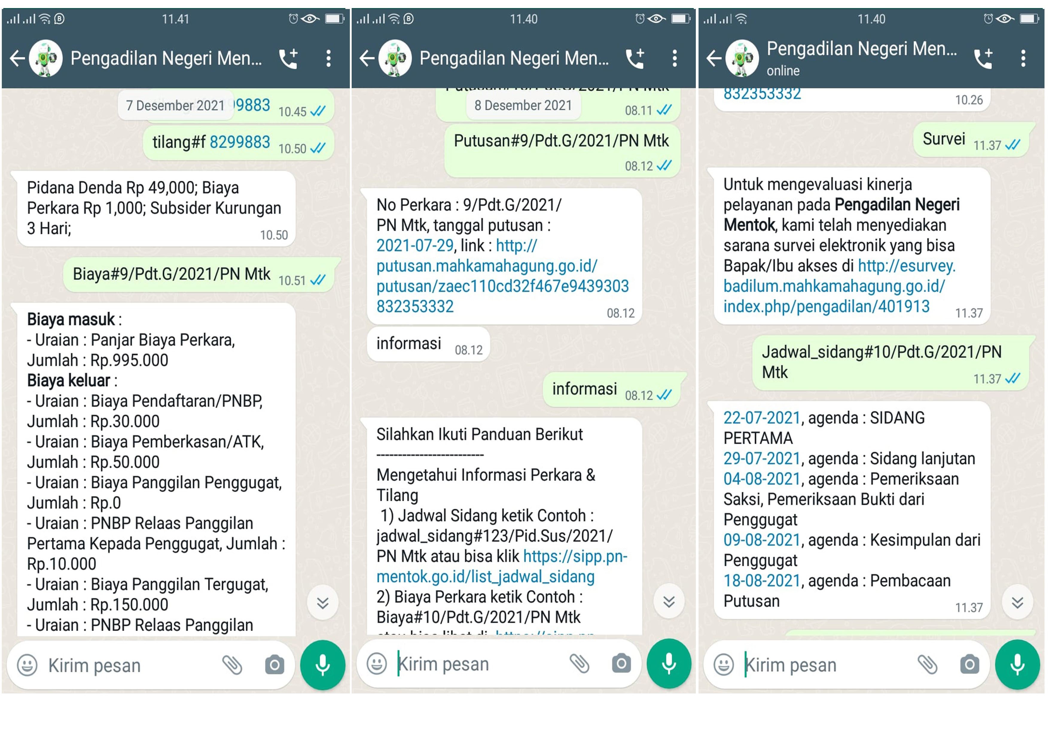 Layanan informasi biaya perkara dan prosedurnya